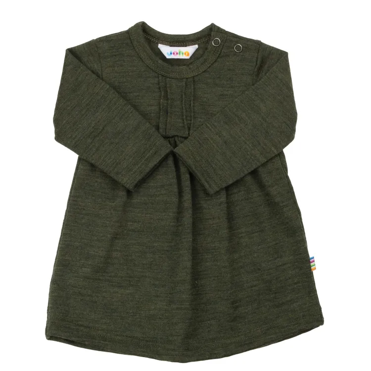 Kjole i mosgrøn melange merinould er lavet af 100% Merino Uld og i farven Mos grøn. Vi fører et kæmpe udvalg af JOHA. Følgende størrelser er på lager (60, 70, 80, 90, 100, 110, 120). Du får FRI FRAGT allerede fra 349,- hos Ugleunger når du handler Kjole fra JOHA.