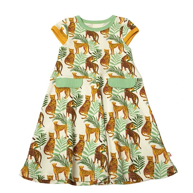 Kjole grøn og gul økologisk bomuld med tigerprint