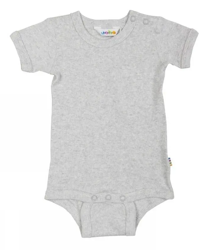 Gråmeleret kortærmet body i rib økologisk bomuld