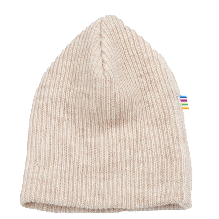 Hue i dobbeltlag i beige i ribbet struktur i 100% merinould