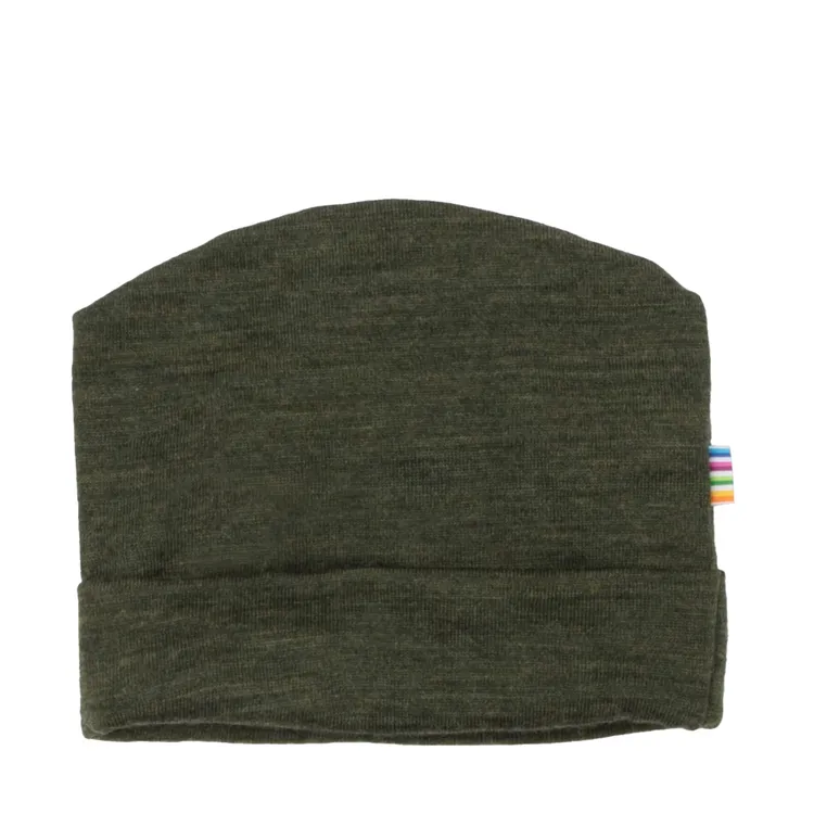 Hue i dobbeltlags mosgrøn melange merinould
