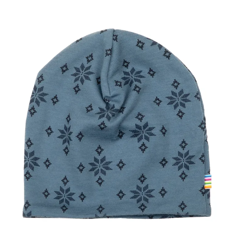 Hue i blåmeleret merinould og økologisk bomuld, dobbeltlags