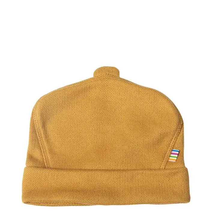 Hue i sennepsfarvet økologisk strik bomuld