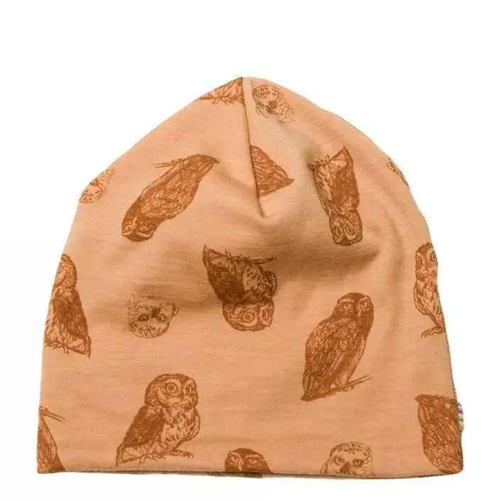 Hue i kobberfarvet uld-bomuld med ugleprint