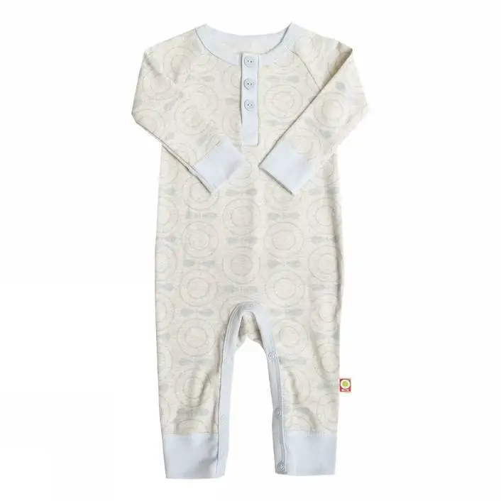 Heldragt grå/blå økologisk bomuld med æbleprint