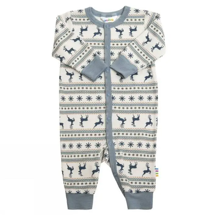 Heldragt i lyseblå/sand uld - Jumping deer
