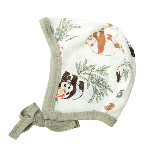 Hjelm cremefarve og lysegrøn kant i økologisk uld