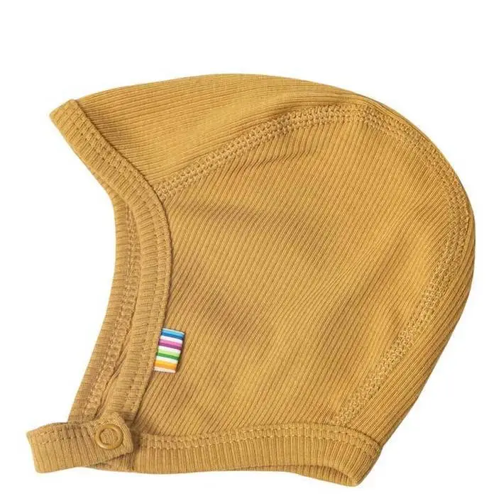 Hjelm med knapluk mørk sennepsfarvet økologisk bomuld