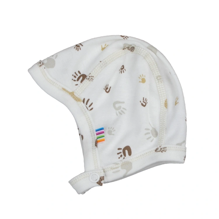 Hjelm i off-white enkeltlags økologisk bomuld med håndprint motiv