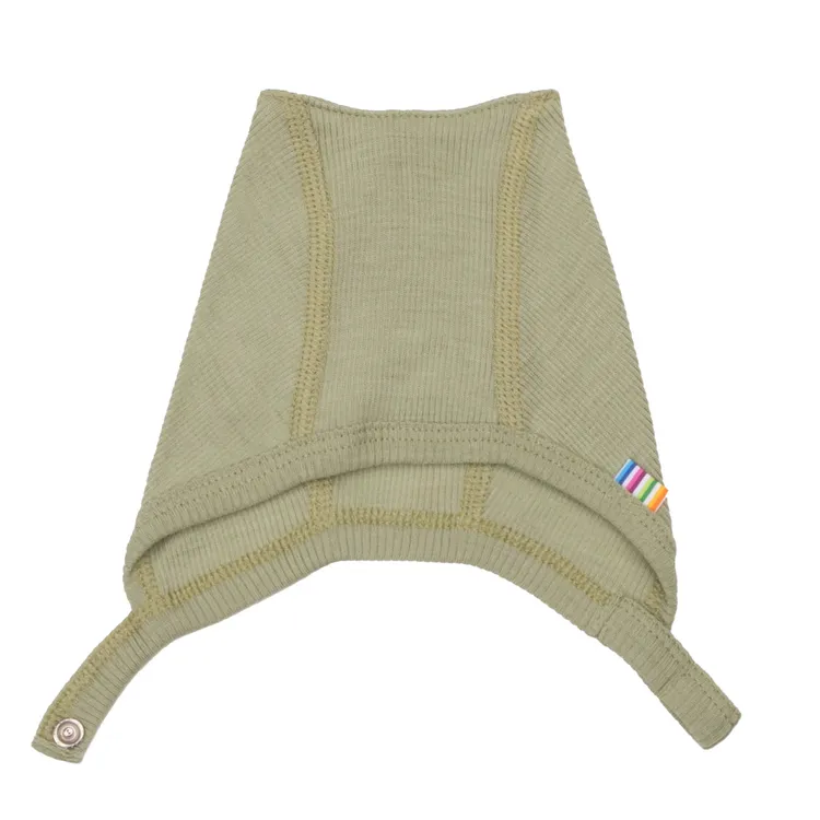 Hjelm med knapper i enkeltlags olivengrøn uld og silke