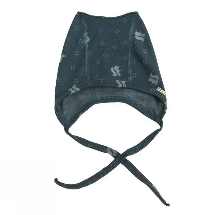 Hjelm i mørkeblå 100% uld med print af egern