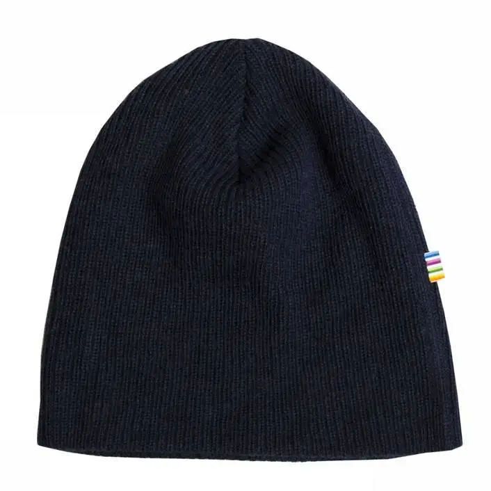Hue i tyk mørkeblå Rib uld