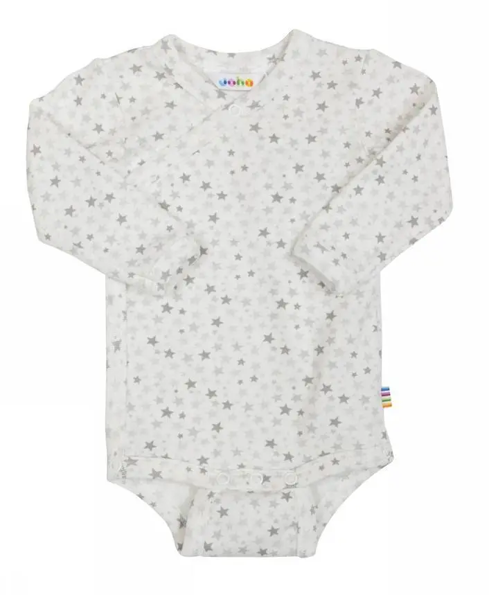 Hvid body med sideluk og små grå stjerner er lavet af 100% Økologisk bomuld og i farven Mini Stars. Vi fører et kæmpe udvalg af JOHA. Følgende størrelser er på lager (). Du får FRI FRAGT allerede fra 349,- hos Ugleunger når du handler Body sideluk fra Joha