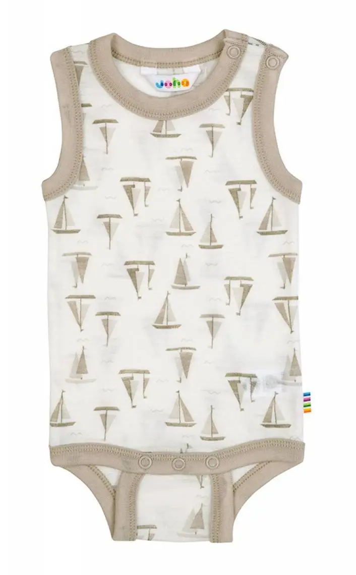 Hvid body uden ærmer med små brune skibe i sommeruld er lavet af 100% Merino Uld og i farven Hvid / brun. Vi fører et kæmpe udvalg af JOHA. Følgende størrelser er på lager (). Du får FRI FRAGT allerede fra 349,- hos Ugleunger når du handler Body uden ærme fra Joha