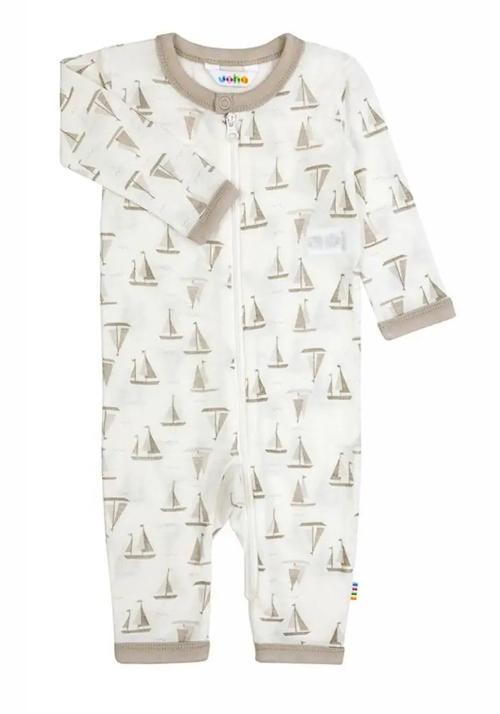 Hvid heldragt med små brune skibe i sommeruld