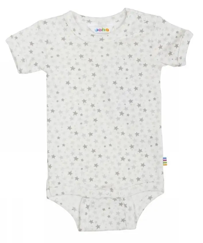 Hvid kortærmet body med små grå stjerner er lavet af 100% Økologisk bomuld og i farven Mini Stars. Vi fører et kæmpe udvalg af JOHA. Følgende størrelser er på lager (). Du får FRI FRAGT allerede fra 349,- hos Ugleunger når du handler Body kort ærme fra Joha