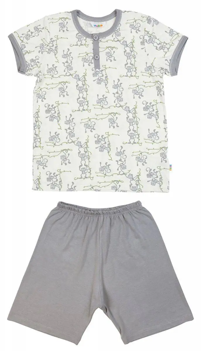 Hvid og grå sommer pyjamas i økologisk bambus med aber