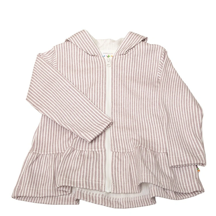 Jakke med hætte i økologisk lyserød og hvidstribet bomuld