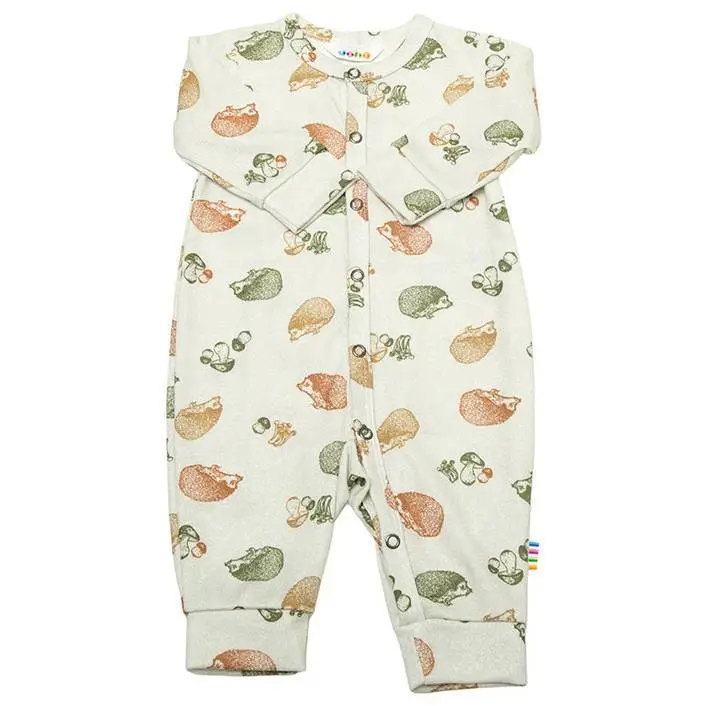 Heldragt i cremefarvet økologisk Bambus med pindsvin print