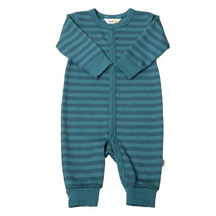 Dragten er lavet af 95% uld og 5% polyamid, hvilket giver den en behagelig og fleksibel pasform. Ulden bidrager til at regulere kropstemperaturen, så din baby aldrig bliver for varm eller for kold. Denne heldragt er perfekt til at holde din baby behagelig og veltilpas hele dagen.