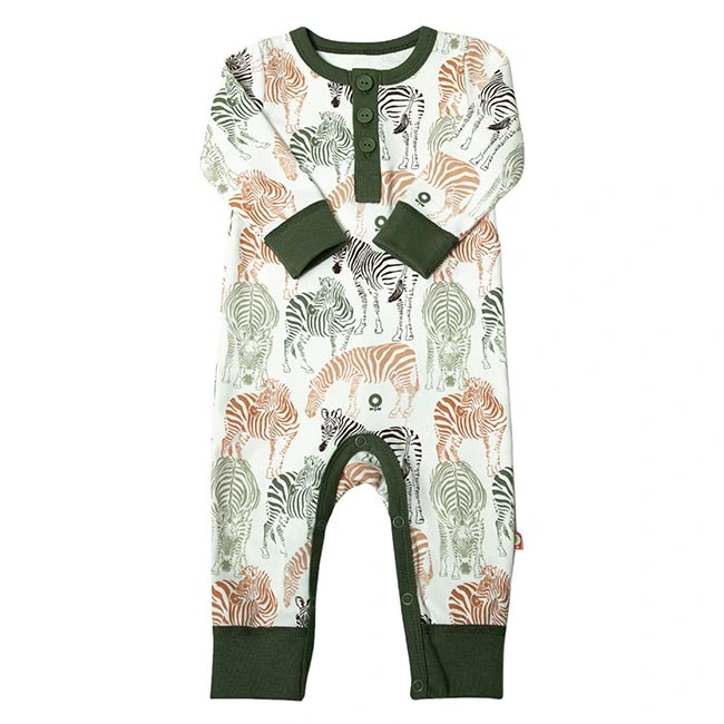 Heldragt grøn og creme økologisk bomuld med print af Zebra