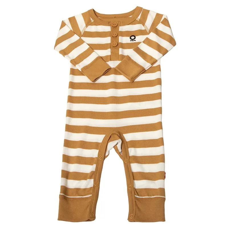 Heldragt i karamel og hvidstribet økologisk bomuld