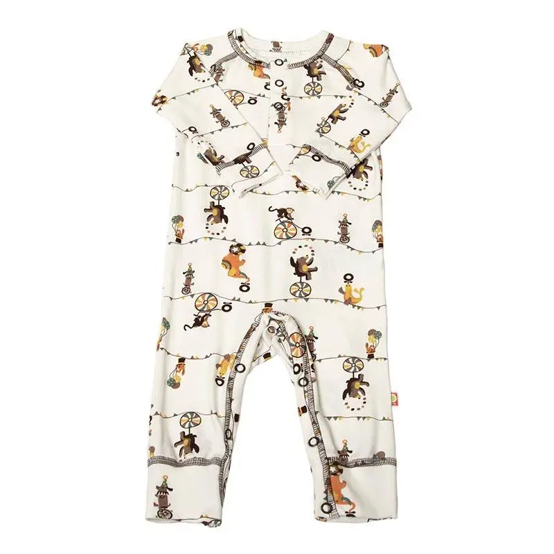 Heldragt råhvid økologisk bambus med cirkusprint