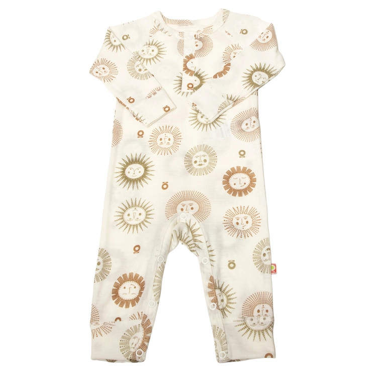 Heldragt økologisk råhvid uld med print af sol