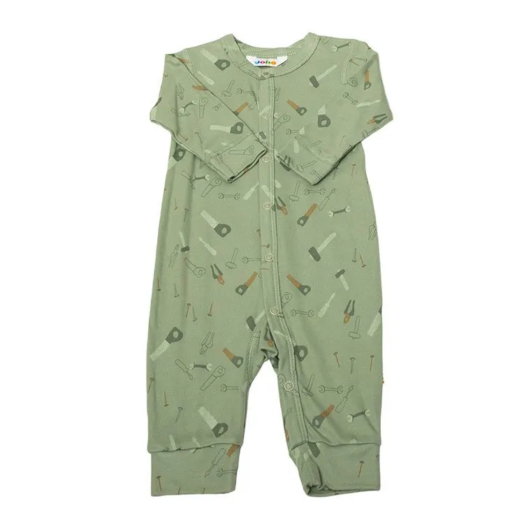 Heldragt i grøn økologisk bambus med værktøjsprint
