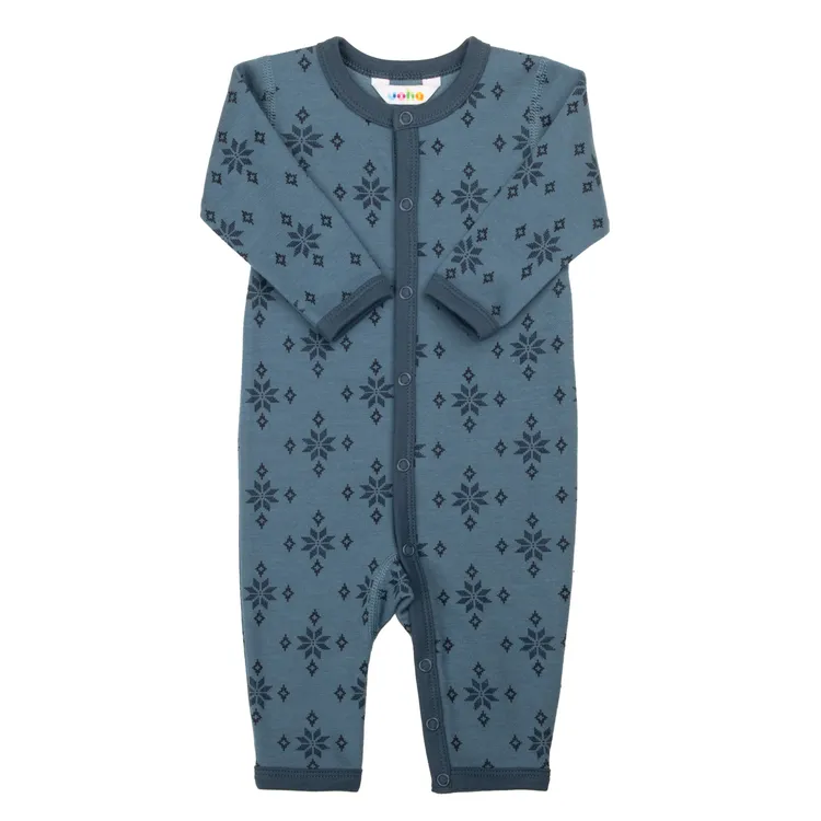 Heldragt i støvet blå uld og økologisk bomuld med iskrystal-motiv