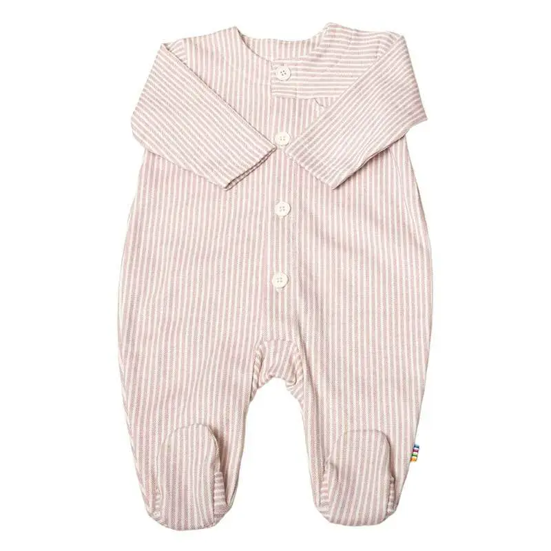 Sommer heldragt i rosa og hvid stribet økologisk bomuld