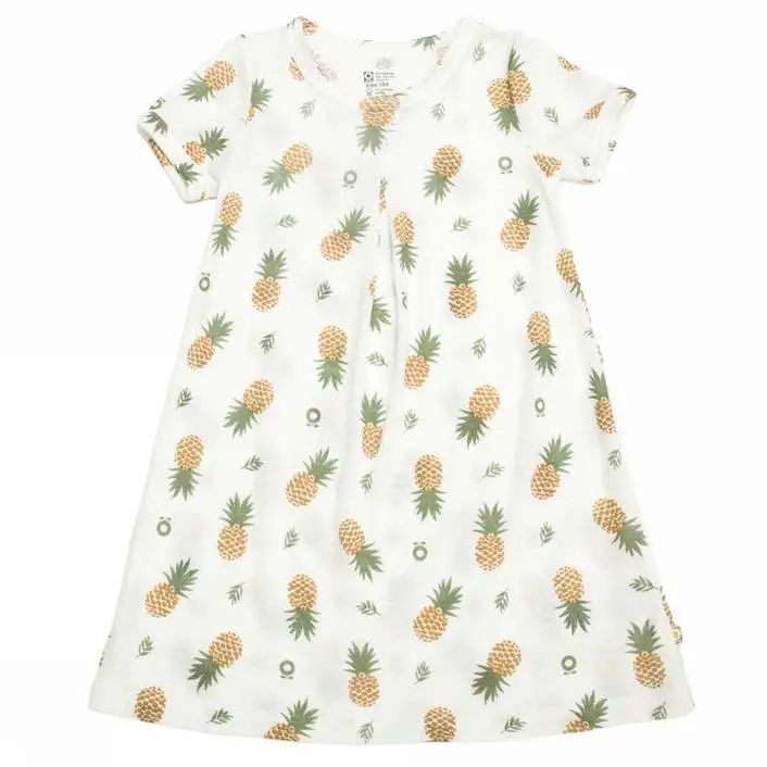 Kjole creme økologisk uld med ananasprint