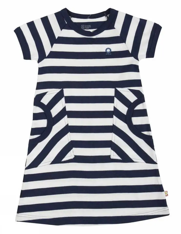 Kjole i mørkeblå og hvidstribet økologisk bomuld