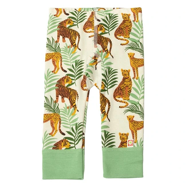 Leggings grøn og gul økologisk bomuld med tigerprint