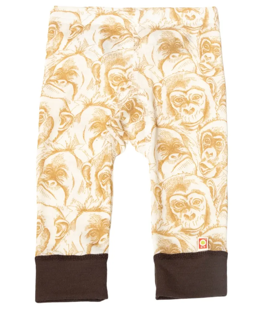 Leggings baby råhvid økologisk uld med chimpanseprint