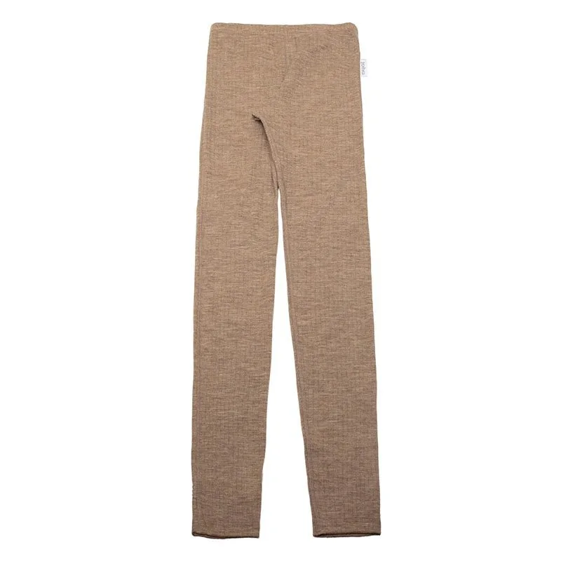 Leggings i brun beigefarvet 100% merinould til voksen kvinde