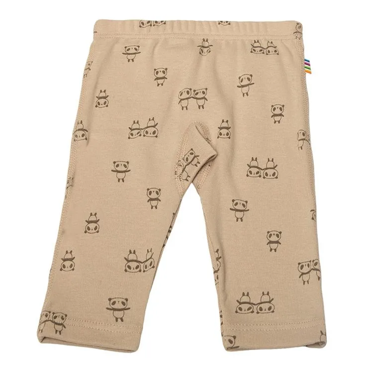 Leggings i flot beige-brun økologisk bomuld med pandaprint