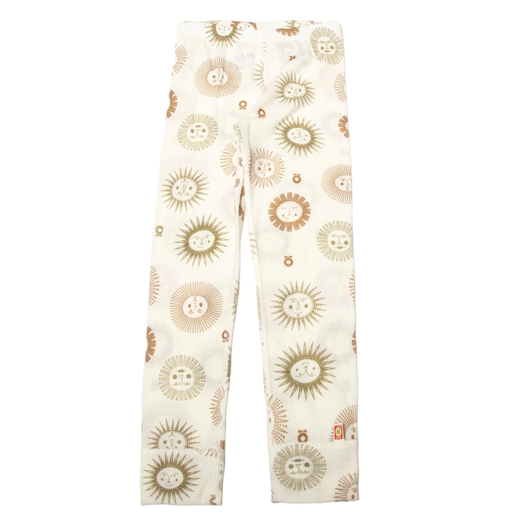 Leggings større børn økologisk råhvid uld med print af sol