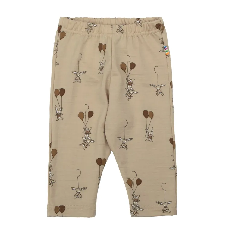 Leggings i varm beige merinould med kaninmotiv