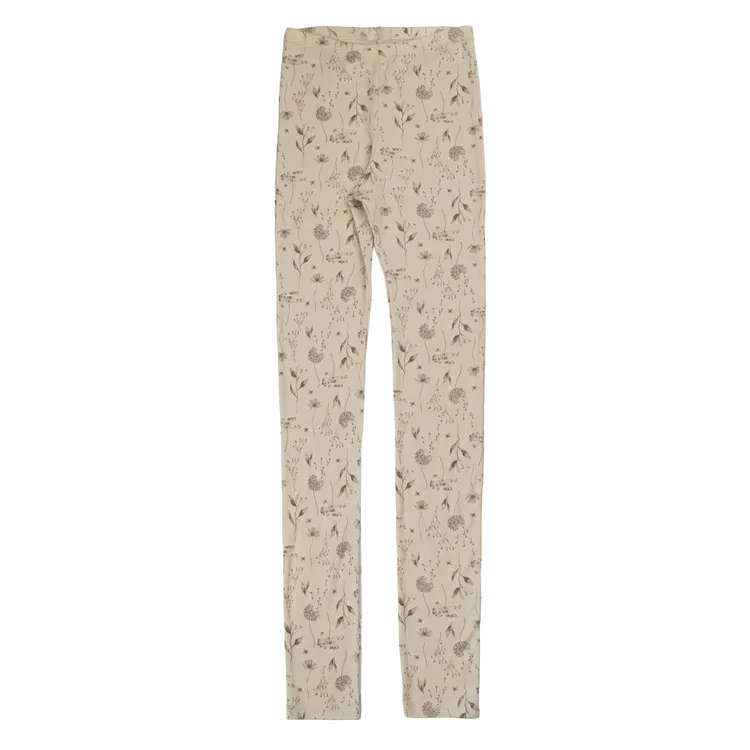 Leggings i lys beige med mælkebøtteprint i merinould