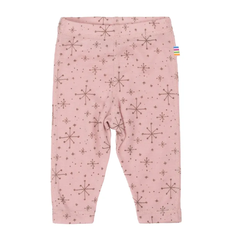 Leggings i lyserød merinould med snefnugprint