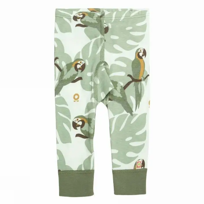 Leggings baby olivengrøn med papegøjeprint
