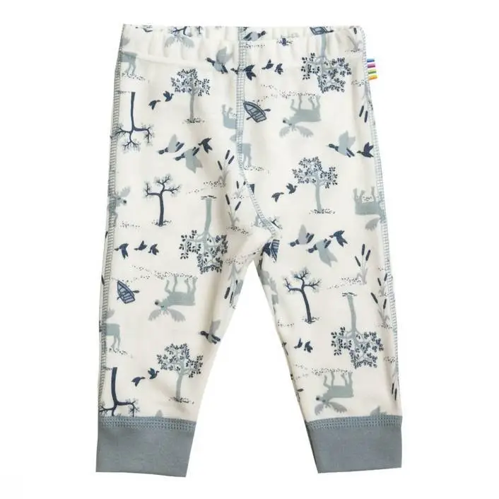 Leggings hvid/lysblå uld-bambus med print