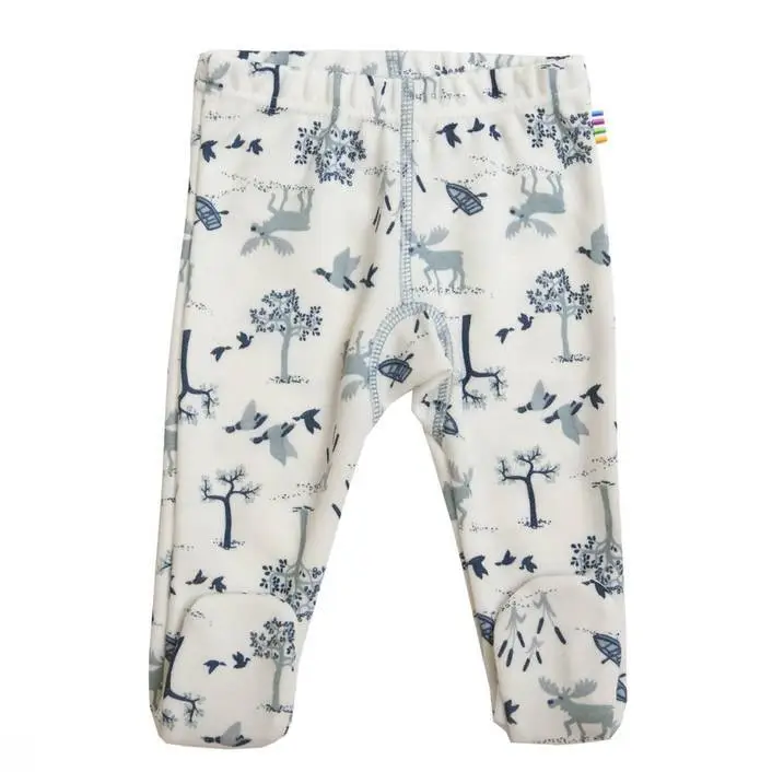 Leggings med fod hvid/lysblå uld-bambus med print