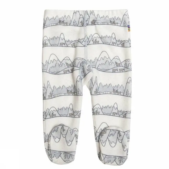 Leggings med fod i hvid/blå uld-bambus med bjerge