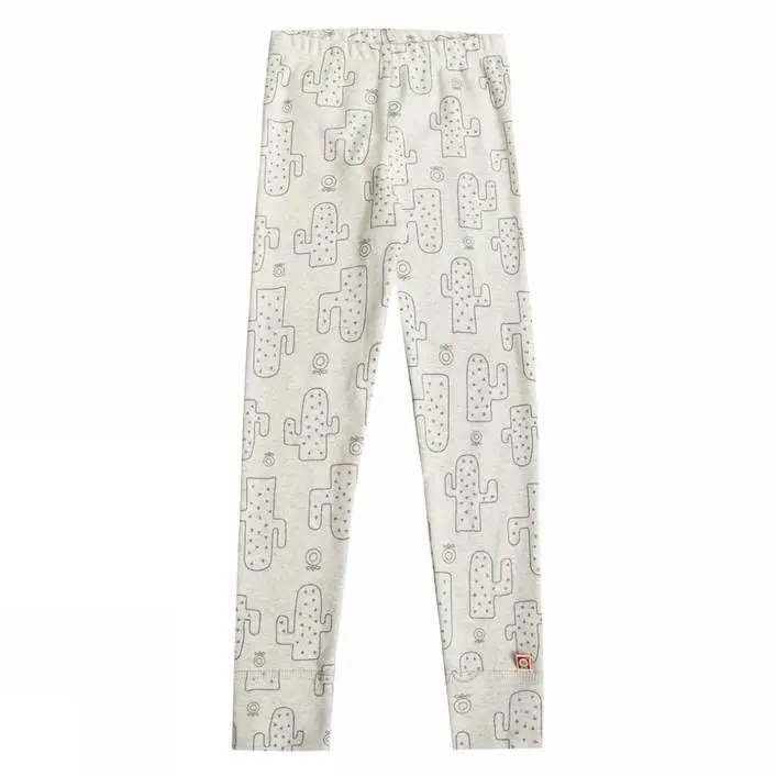 Leggings større børn cremefarvet økologisk bomuld med kaktusprint