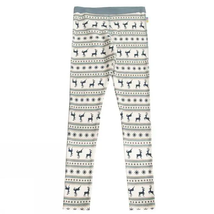 Leggings til større børn i lyseblå/sand uld - Jumping deer