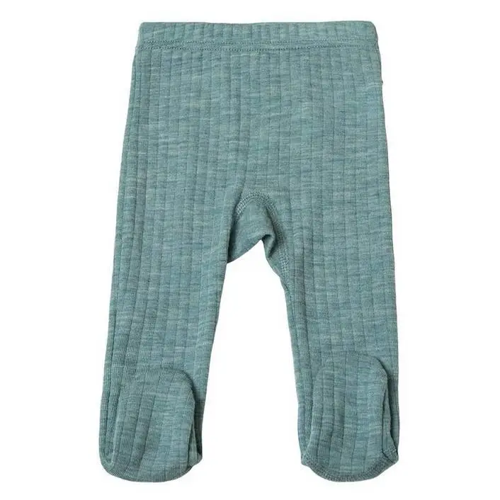 Leggings med fod i turkis ribbet uld