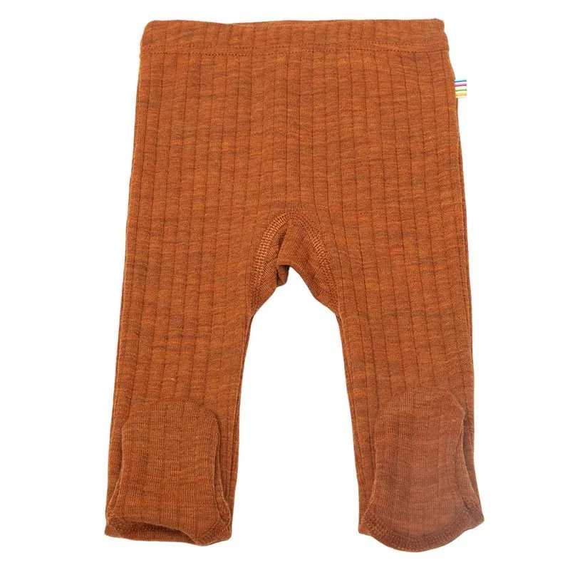 Leggings med fod orange basis merinould - ribform