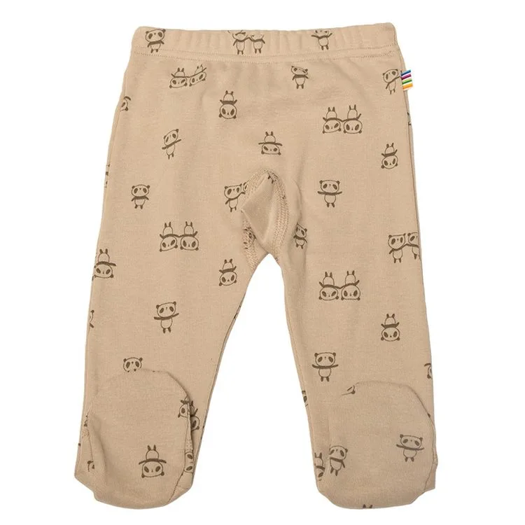 Leggings med fod i flot beige-brun økologisk bomuld med pandaprint